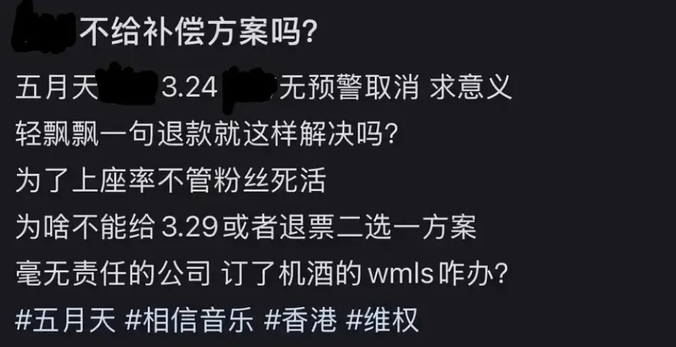 五月天取消24号演唱会爆雷之后,社交平台随之出现了大量吐槽贴。